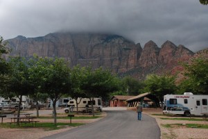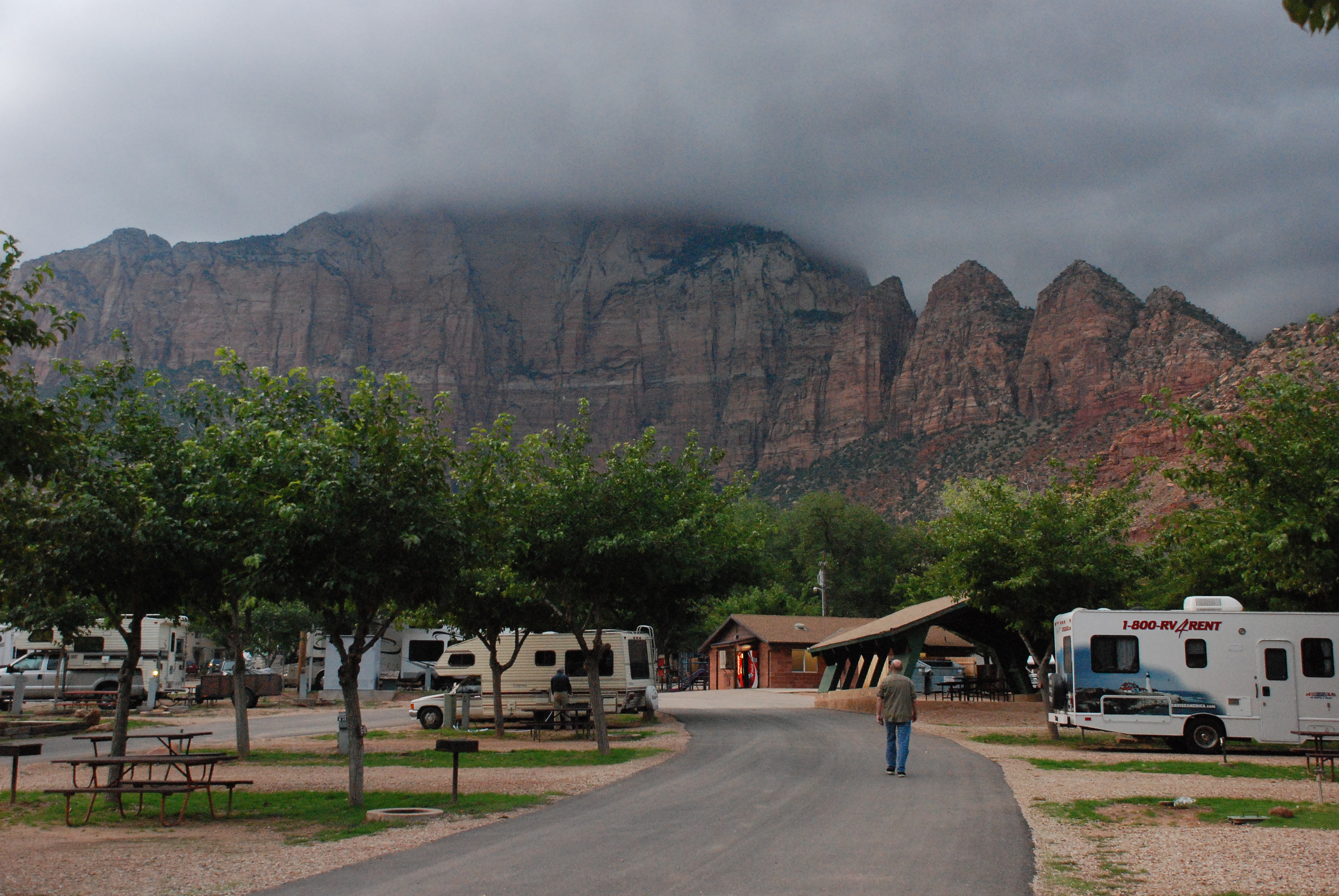Zion NP quick view – we rode the shuttle bus through the park and back without getting off at any stop. But it persuaded us to stay for a night in a nearby RV park (Springdale, UT) for a good go at Zion tomorrow.