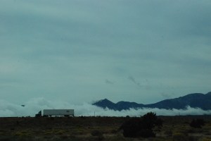 B. adds: “After the visual wonders of the last few days, Mother Nature still had something new to show us.” From about 29 miles distance, we could see an odd cloud formation against a backdrop of high hills. I predicted that it was Cajon Pass, and thus it turned out to be.