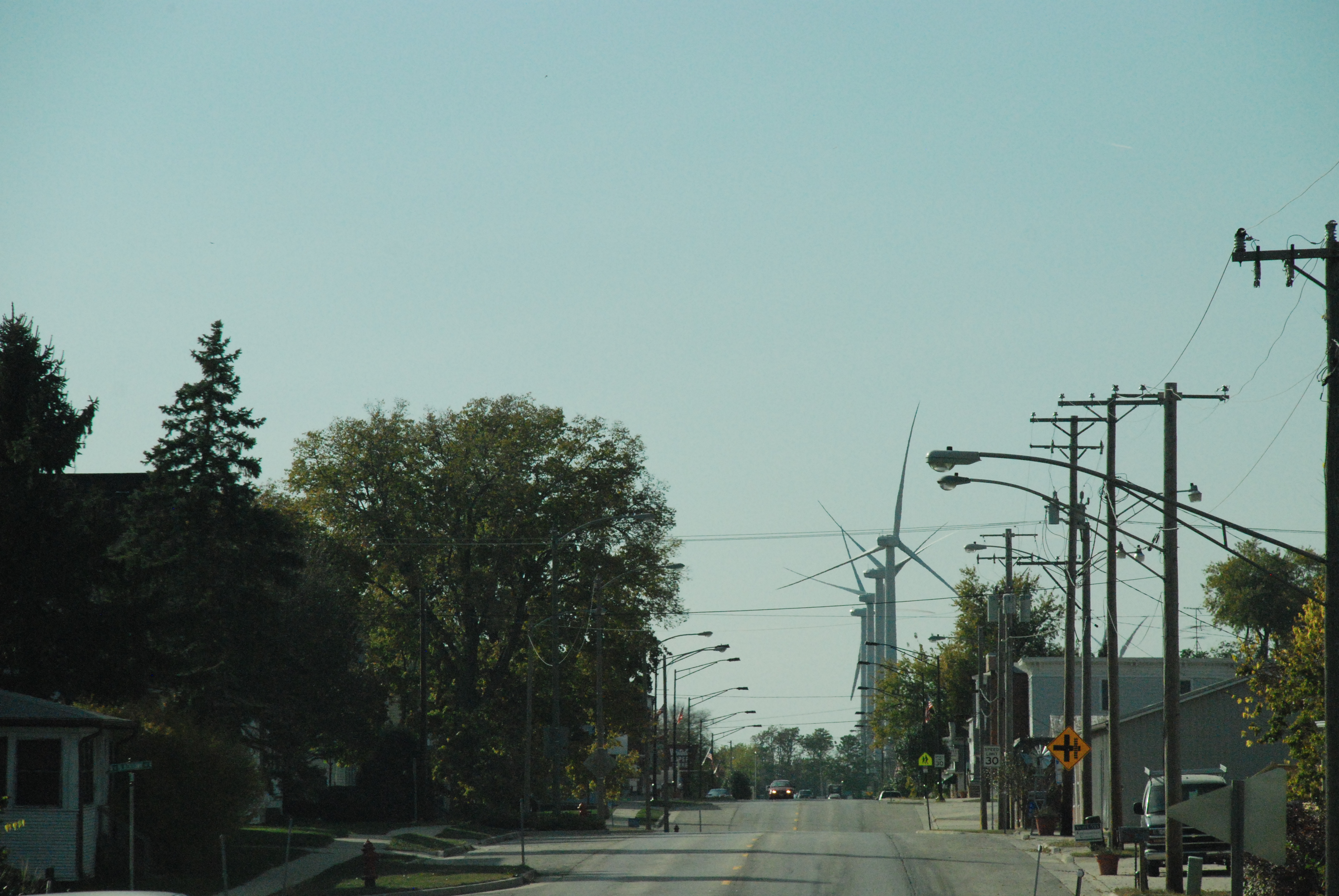 Eastward out of Aurora, we saw many windfarms. As we got farther west in Illinois, not so much. So B consulted a map and suspects that U of Illinois in DeKalb may have instigated the windfarms. This may be Malthusian (population growing faster than resources allow … and then technology enables better use of resources).